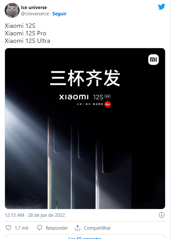 Xiaomi 12S, 12S Pro e 12S Ultra serão lançados em 4 de julho